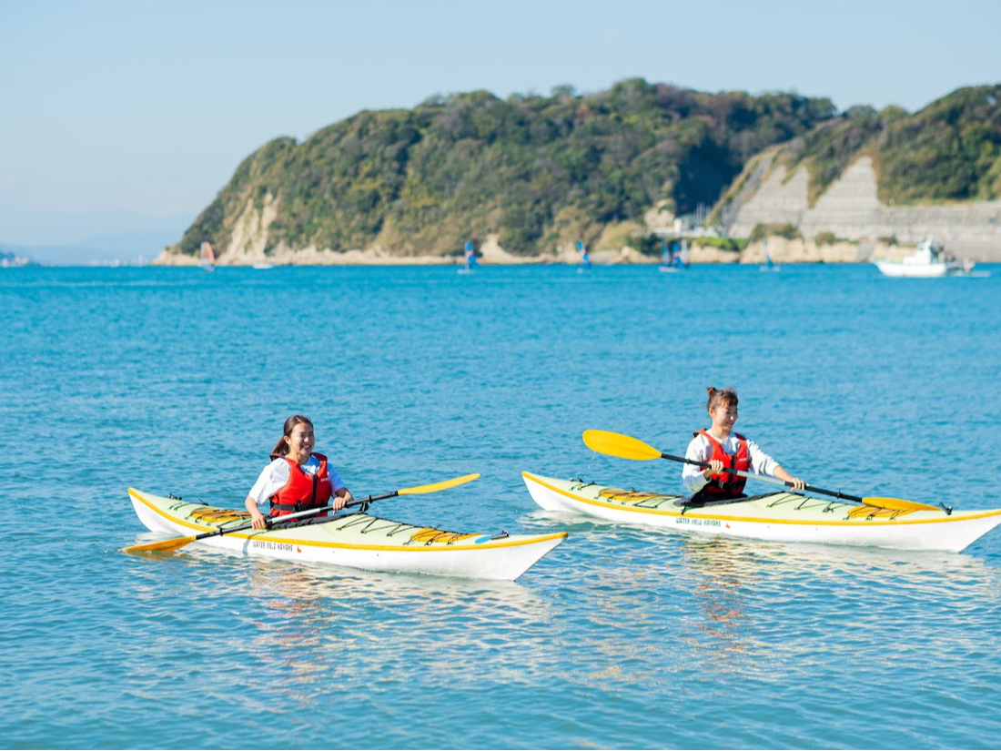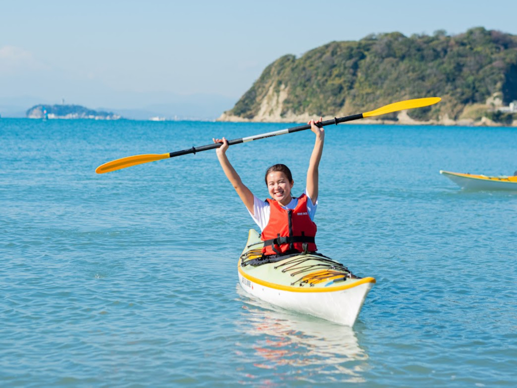 【逗子/葉山・手ぶらでカヤック体験】会員制リゾート施設で女性に人気の贅沢シーカヤック体験(半日)★アメニティー充実でバスタオルも完備。1ドリンク付、体験写真データプレゼント。