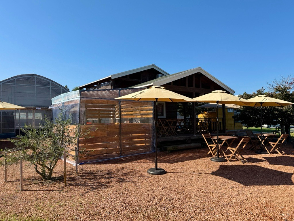 木の香りが素敵なイートインスペースを新設♪夏の日差しや冬の寒さを気にせずに楽しめます^^