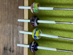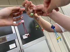 マーブルの蜻蛉玉に挑戦!簡単と思いきや…両手を別に動かす作業や模様のバランスが難しく奥深いと感じました。丁寧に教えて頂き、冷ます時間も楽しいお話をしてくださり素敵な思い出になりました。