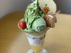 犬連れ温泉旅行中、パフェとソフトクリームを食べに行きました。こちらは店外にいくつかイスとテーブルがあり、ワンコも大丈夫です。屋根もあります。ぶどう最盛期で悩みましたが、ぎりぎりあったももパフェとサクランボソフトを食べました。SNS映えするパフェ!お値段も安い!ソフトには冷凍のサクランボが一つのってました。桃は少し甘みが足りない気がしましたが、パフェのてっぺんにのってたぶどう2粒、とっても甘かった〜。また行きたいです。