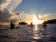 慣れてきたら、ボードの上で寝そべったり、腰かけて足を海に入れてチャプチャプ…水平線を眺めながら、波の流れに身を任せ最高です。無人島へ行く時は太陽が沈むラインに雲がかかっていましたが、夕陽に変わる頃は、雲もなく最高のロケーション。夕陽が沈んでいくのを海の上に立って眺めるなんてすごく贅沢でした!