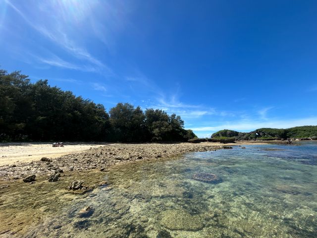 貝殻やサンゴ、星の砂、太陽の砂、シーグラス、うにの抜け殻などを探します。