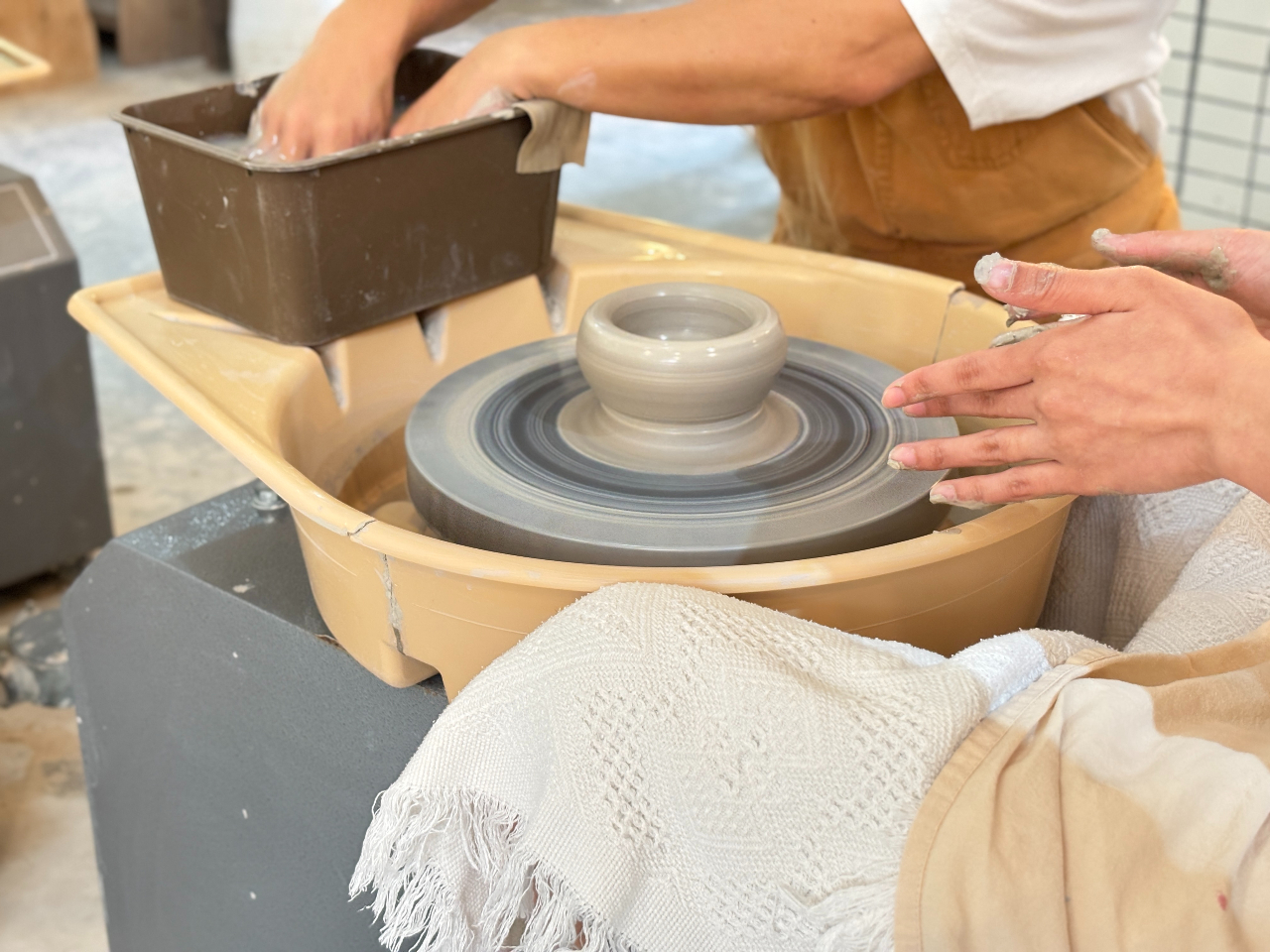 電動ろくろを使い形を作っていくから簡単ではないけれど、その分満足感もひとしお!器の雰囲気が決まる釉薬は、サンプルからお好きな色合い、質感のものをお選びください。