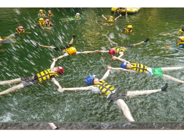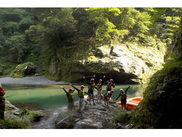 しっかりと漕いで、流れに乗ってガンガン進みましょう。途中、流れのない穏やかなスポットでは、ぷかぷか浮かんでリラックス!岩場から飛込をしたり、時にはプチシャワークライミングも。