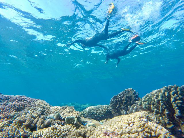 当プランはシュノーケルに必要なものは全て料金に含まれているので追加料金がかかりません。水着では肌寒い場合がある11月〜5月の間はウエットスーツも無料でご用意します。スタッフが水中カメラで撮影した写真のデータも無料でプレゼントします。SUPは2セットご用意します。