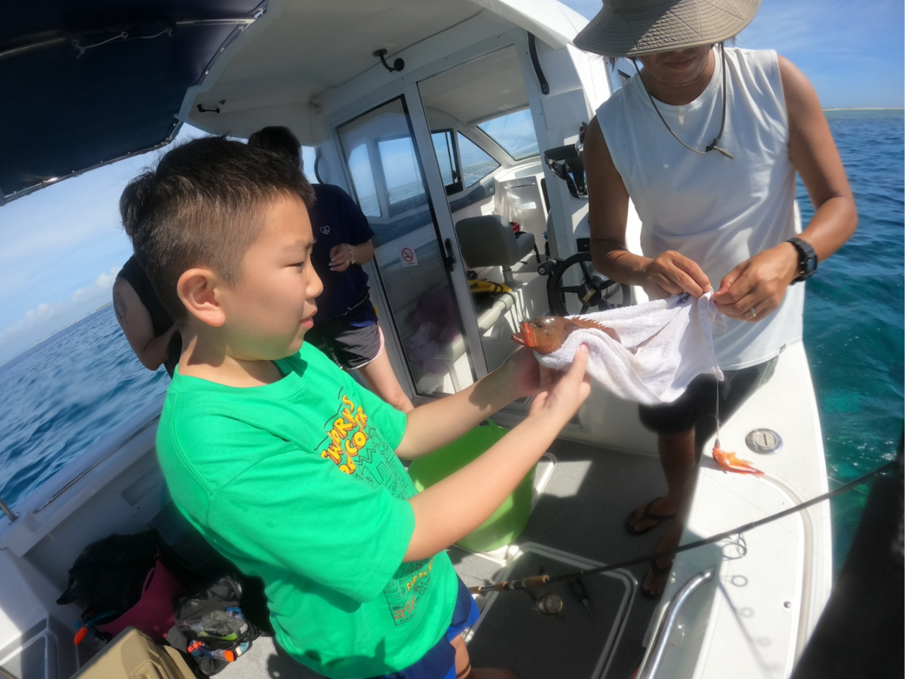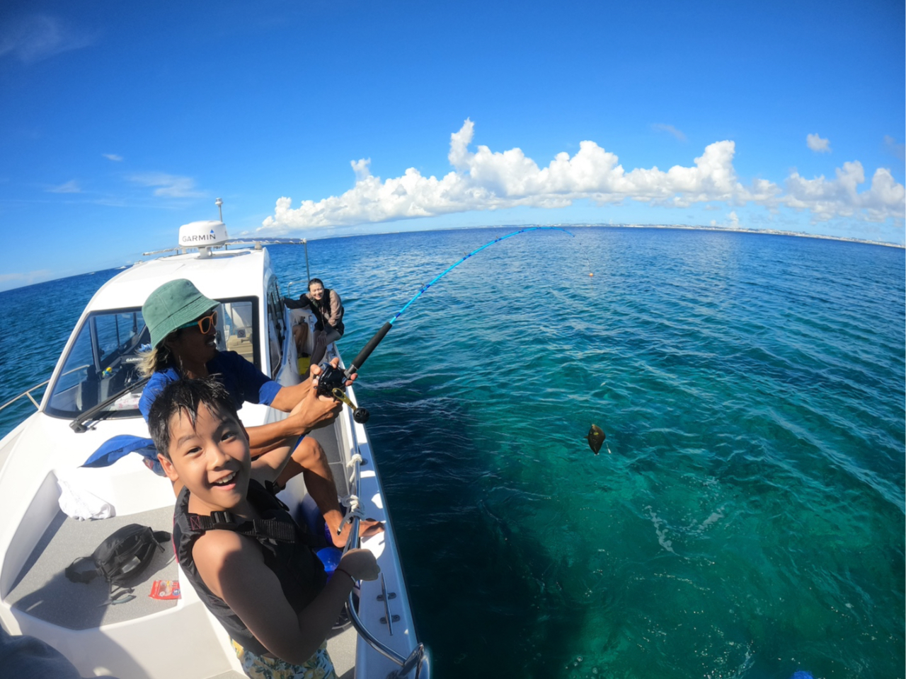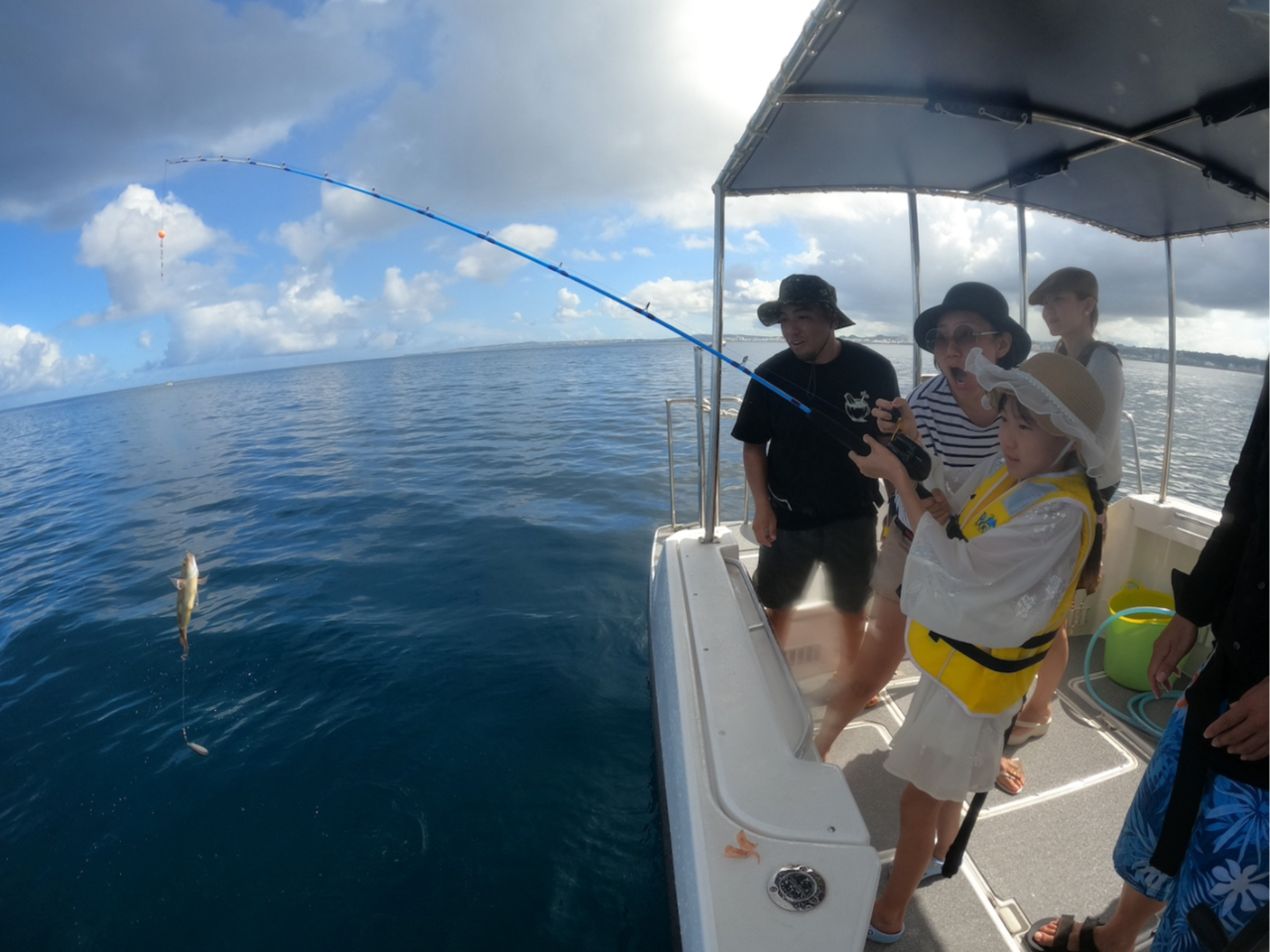 【北谷発】家族やグループで船を完全貸切!早朝夕方便あり!体験トロピカルフィッシング!港はアメリカンビレッジ徒歩5分無料写真レンタル込み!120分8名迄