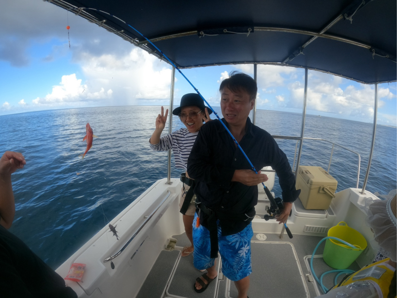 【北谷発/半日】家族やグループで船を完全貸切!体験トロピカルフィッシング!港はアメリカンビレッジ徒歩5分無料写真レンタル込み!半日4時間8名迄