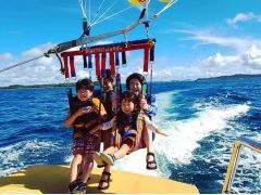 年齢的に、参加出来るマリンスポーツが限られる中、こちらのショップで、パラセーリングをお願いして、本当に良かったです。船に乗り込む時やパラセーリングを行う際も丁寧に指導してもらい、最初、心配だったけど、会話で、冗談とか言ってくれて、緊張がほぐれ、恐怖心など吹き飛んでしまいました。