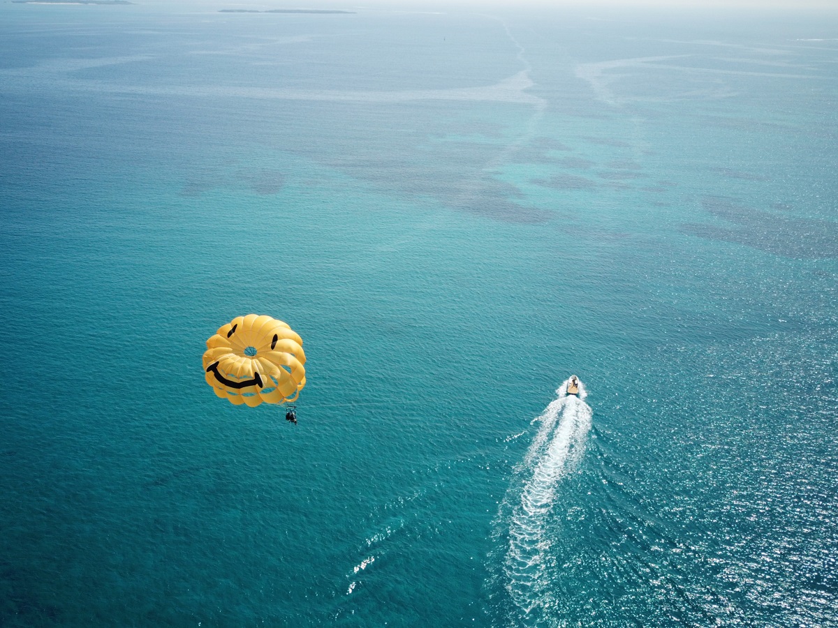 気スポット海中道路でパラセーリング100m1回&マリンスポーツ2時間遊び放題プラン。遊びつかれること間違いなし♪