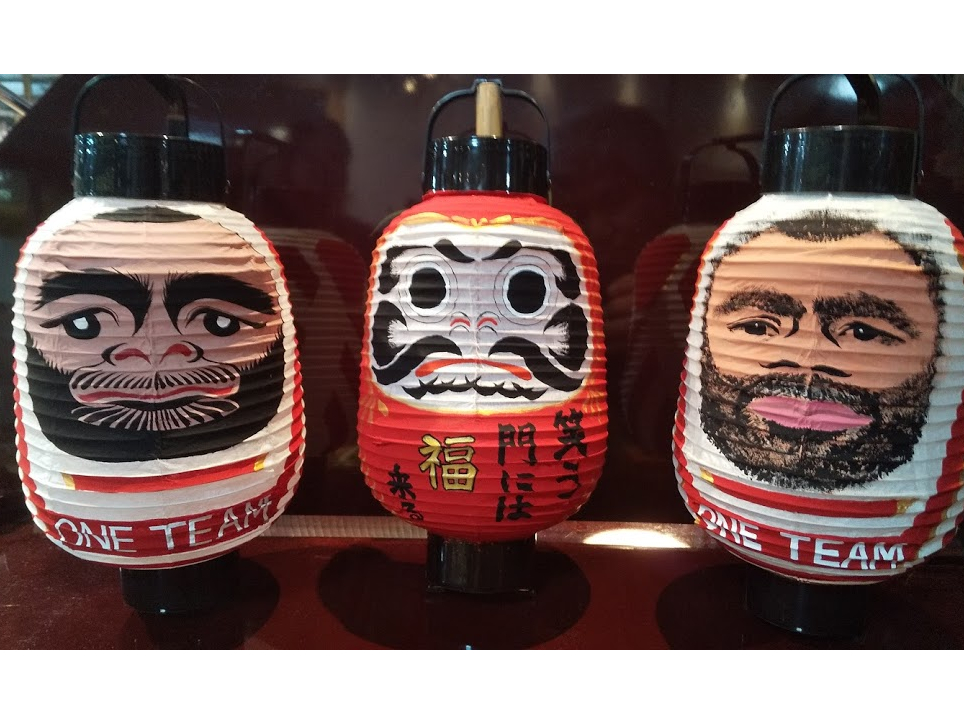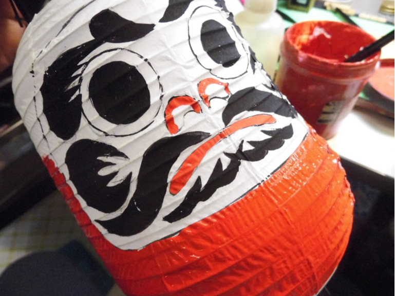 江戸文字提灯体験は「太くて大きな文字」を描き入れます。好みで色付け、絵付けをして完成。難しそうに見えたけど、始めると夢中になり意外と…と多くの方に言われます。