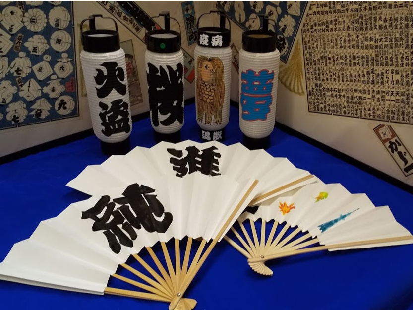 提灯の他。扇子もご用意しています。描きやすくするために要を外してあります。