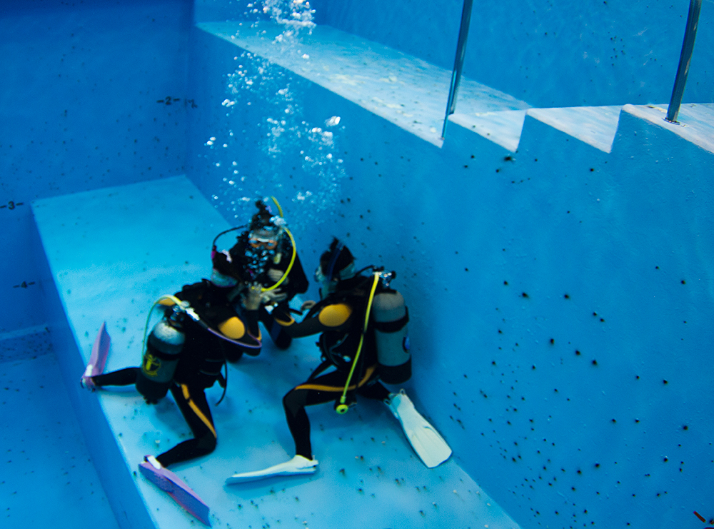 このプランではインストラクターと一緒にプールに潜るので水中でも安心♪