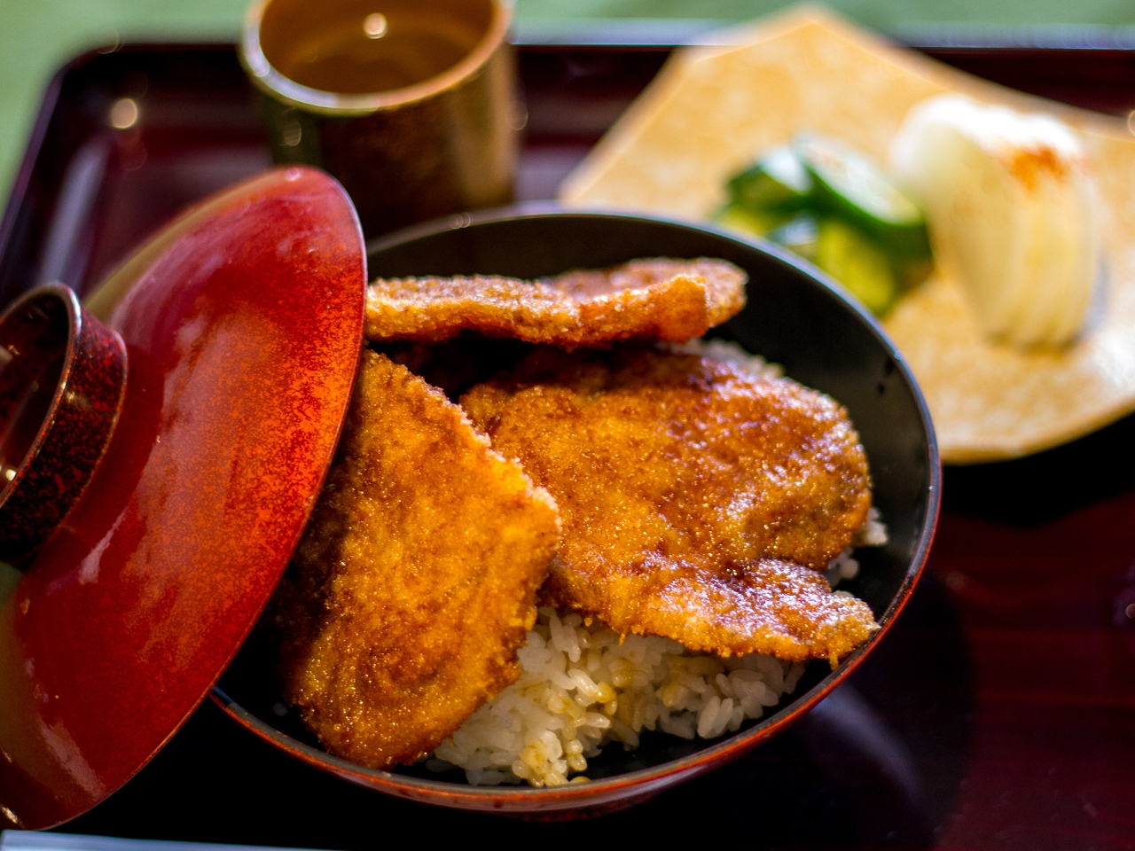 • ふわとろ卵の上に揚げたてサクサクのとんかつがのったカツ丼。タレはしょうゆとソースから選べます。