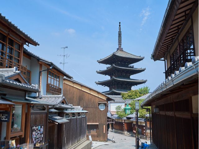 お店は「八坂の塔」の正面。清水寺・高台寺・八坂神社などが徒歩10分圏内にある京都観光の中心スポットです。