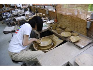 電動ろくろを使ってカップ、飯碗、どんぶり、大皿などを製作。