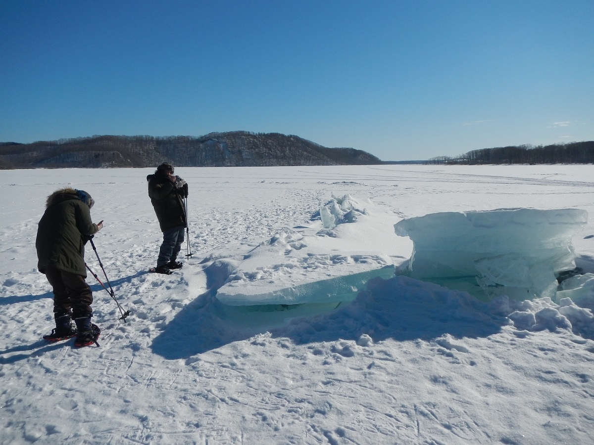 12月〜3月の厳冬期に完全結氷する塘路湖の上をトレッキング