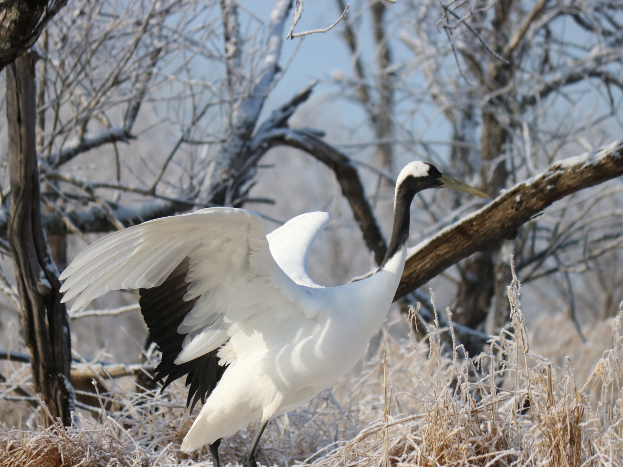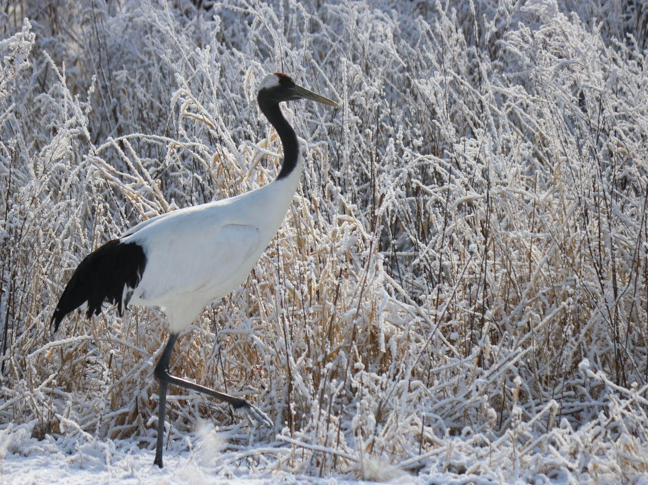 一面雪に覆われた場所で見るタンチョウの姿は優雅で美しい!
