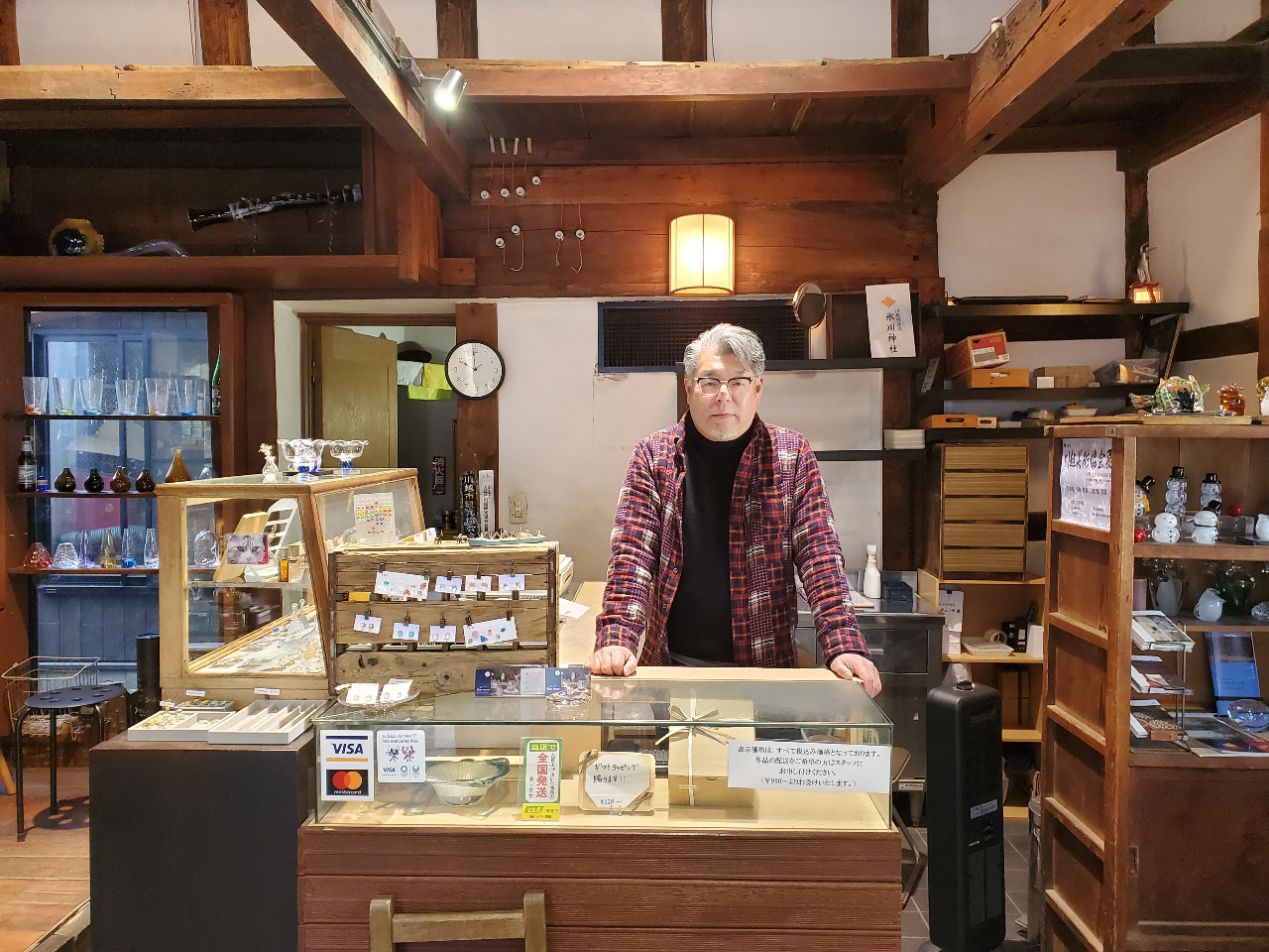 店舗入り口。木造の蔵とガラスの融合したオシャレな雰囲気が漂います☆