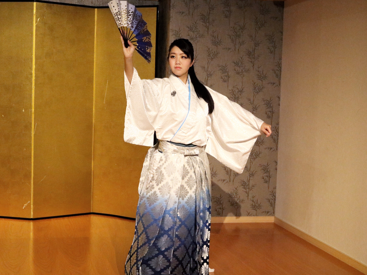 袴姿で和歌や漢詩に合わせて舞う扇舞(詩舞)が曜日・時間限定で体験できる。