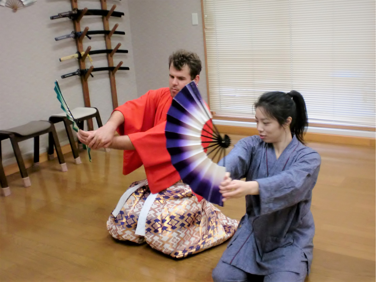 和歌や漢詩に合わせて扇で舞う「扇舞体験」
