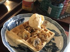 『ニューヨークワッフル』トッピングは季節の果物とバニラアイス
