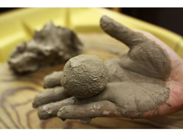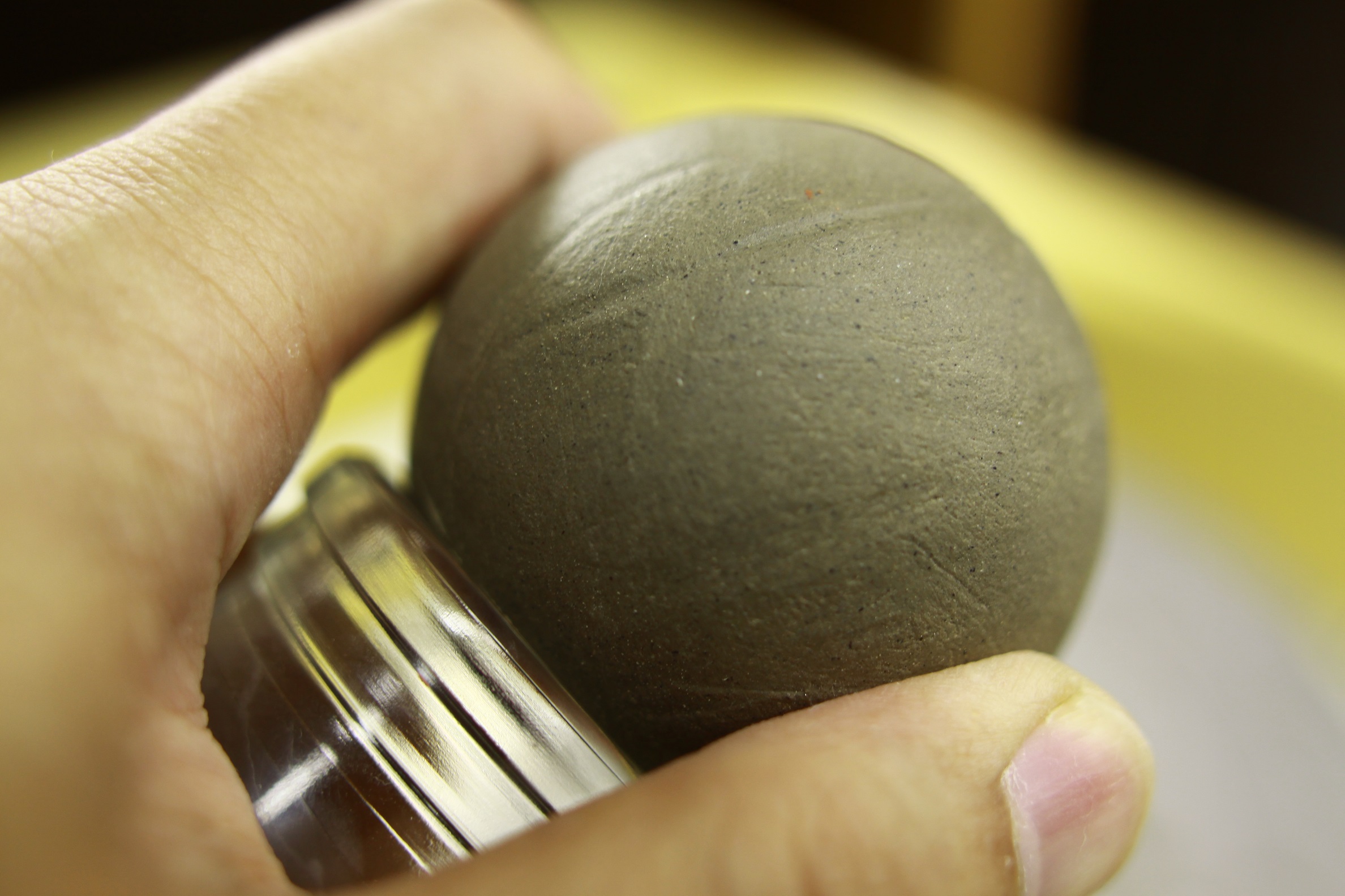 堀越陶房で作る泥だんごは先生の学生時代からの磨き技(20年モノ)