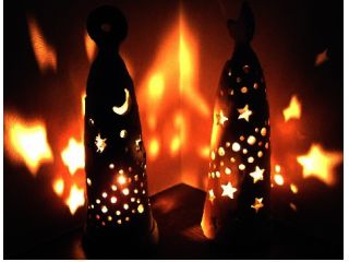 星型や月型などの色んな穴を空けたりと自由にデザインしていくだけ♪ランプシェード作り