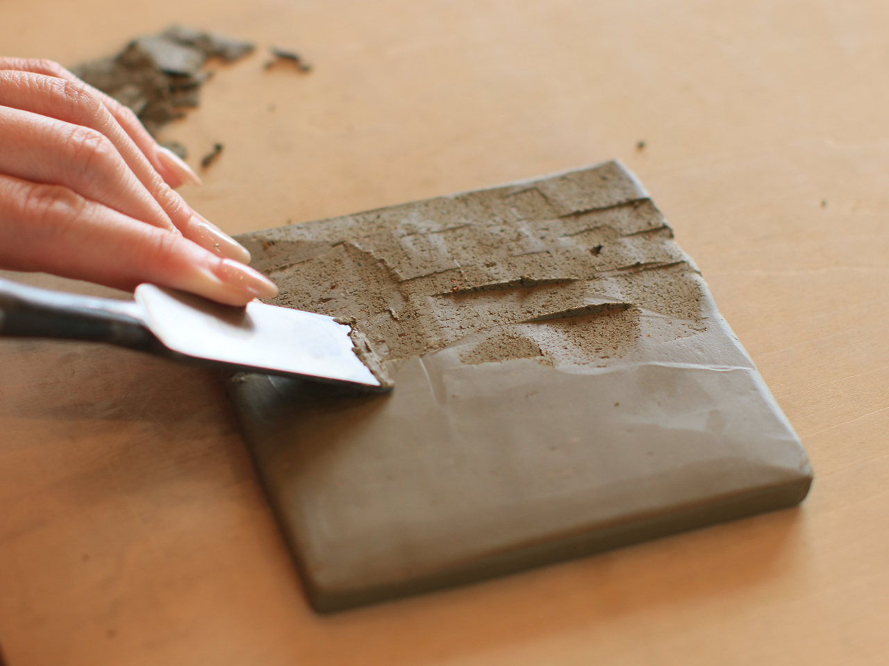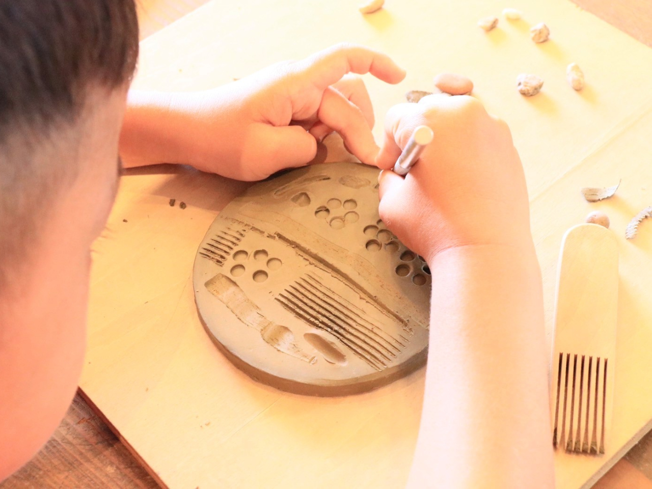 小石で押したり、木べらで模様をつけたり、表現方法は自由にアレンジ!
