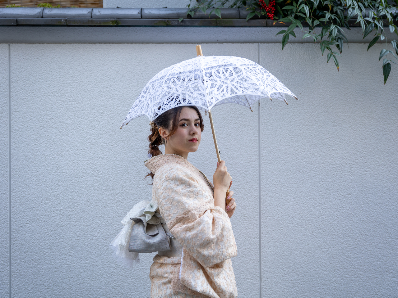 女子旅・カップルデートにオススメ♪京都着物レンタルヘアセット込、レース小物で着物レンタルをもっと可愛く!レースコーデプラン