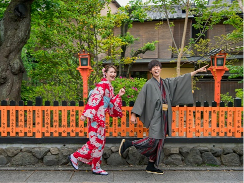 創業160年以上の京都の呉服屋を母体とした国内最大級の着物レンタル店で着物に着替え、伝統的な京町家で「茶の湯」を体験。先生のお手前を見学し、自らお茶を点てることも楽しめます。