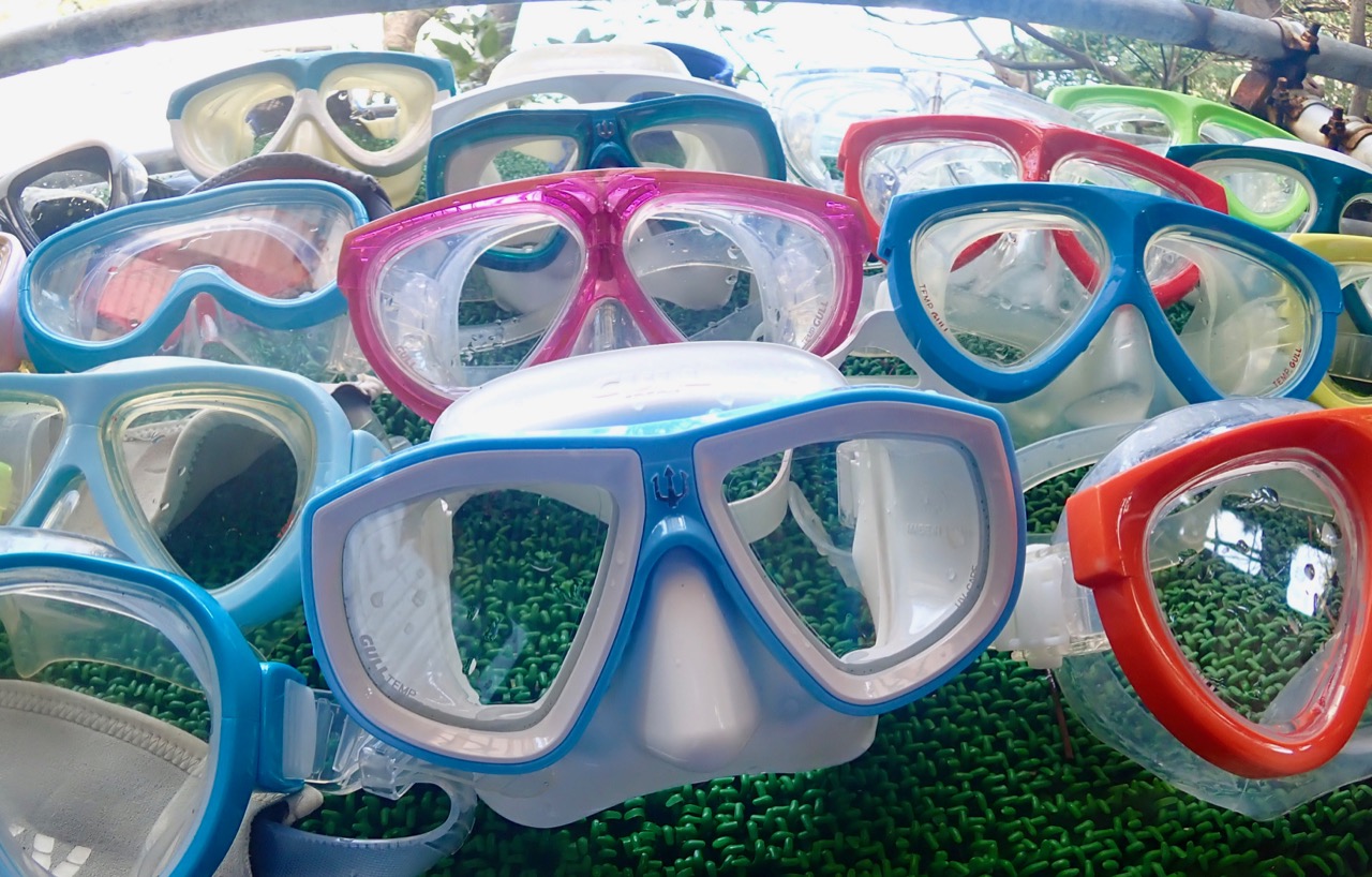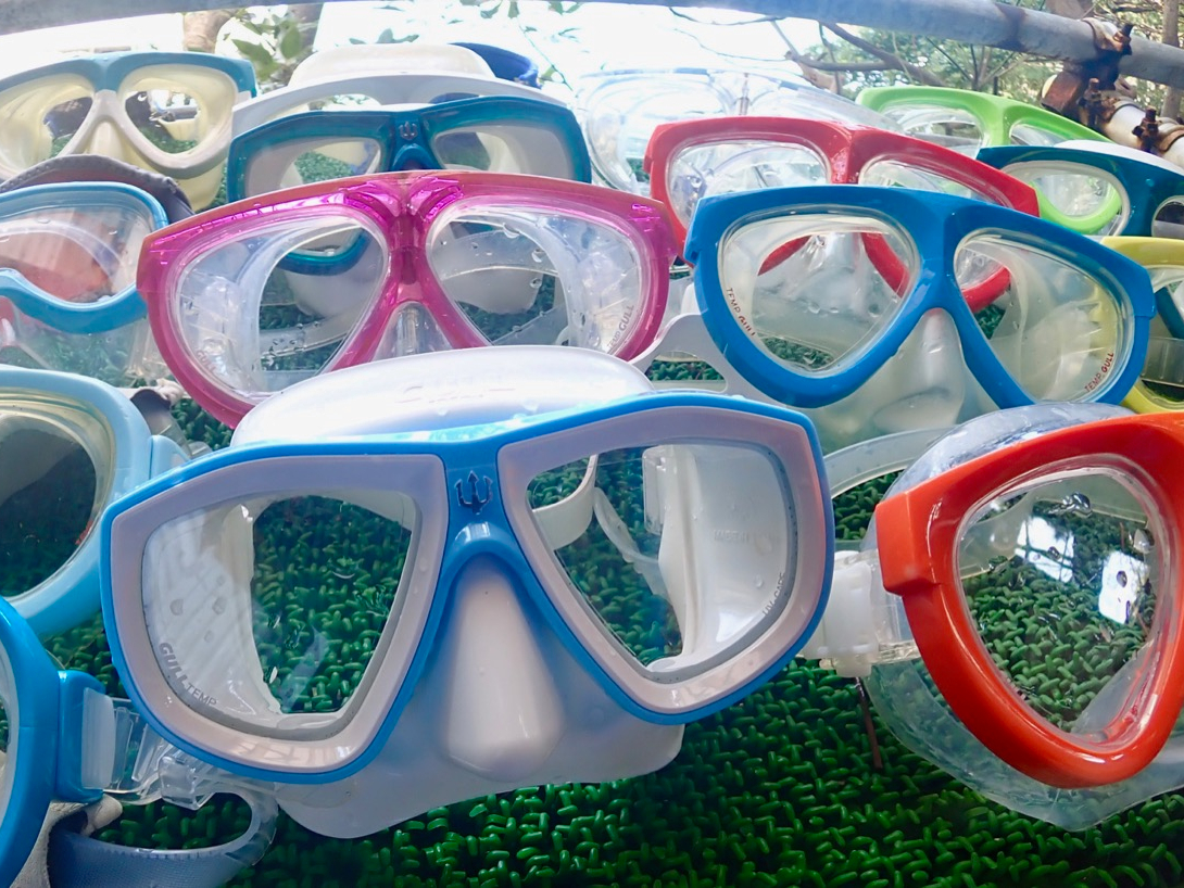 ・一番のストレスは、顔まわりの出来事なので、水中マスクはこだわったものをご用意しております。また撮影した時に表情が明るく写真映えするよう、カラーや種類も多数ございます。お好みのカラーでお楽しみください。(度付きマスクも無料!)※数に限りがございますが、フルフェイスマスクのご用意もございます。