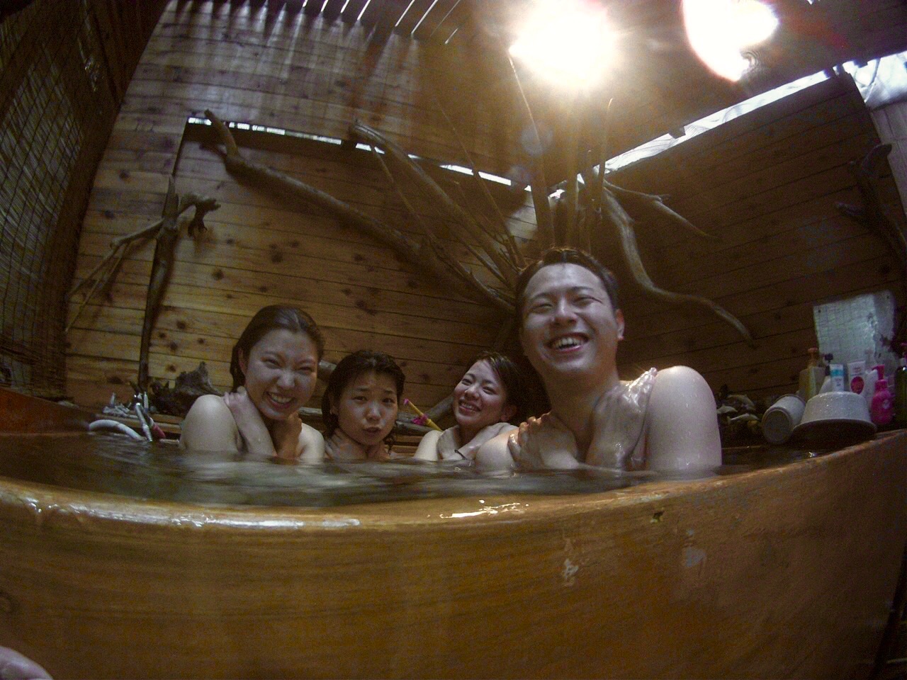 上がった後はプライベートの掛け流し温泉でポカポカ♪ご利用には水着をご用意下さい。