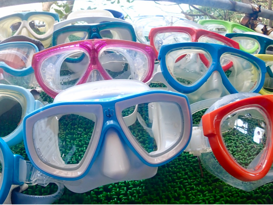 ・一番のストレスは、顔まわりの出来事なので、水中マスクはこだわったものをご用意しております。また撮影した時に表情が明るく写真映えするよう、カラーや種類も多数ございます。お好みのカラーでお楽しみください。(度付きマスクも無料!)※数に限りがございますが、フルフェイスマスクのご用意もございます。