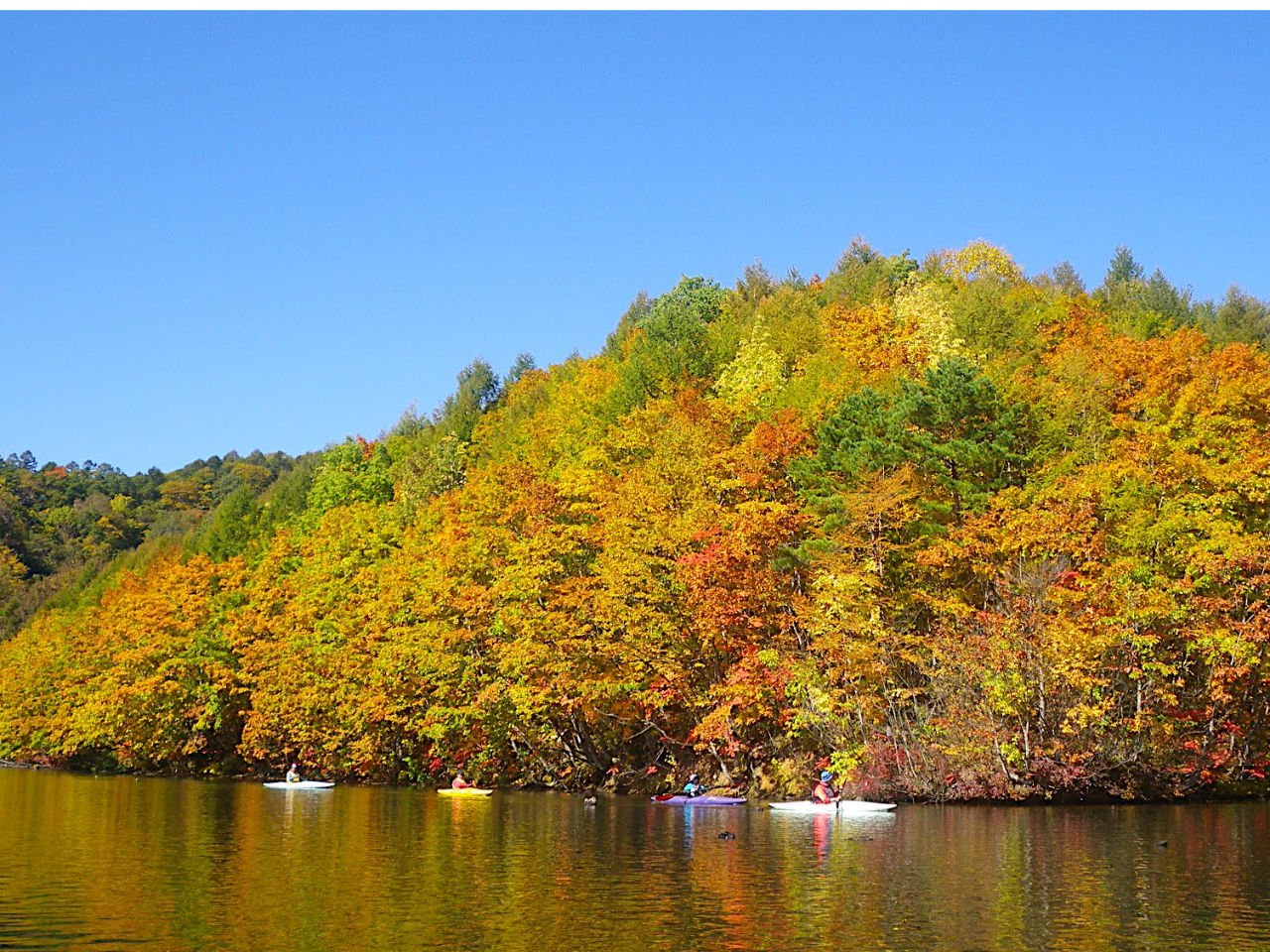 【秋の平日・新企画!】紅葉の名所・桧原湖カヤック体験〜無人島カフェプラン〜