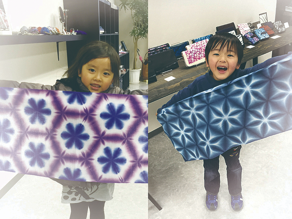 親の付き添いがあれば4歳のお子様から体験出来ます。 写真は本人が染めた手ぬぐいです(^▽^)/