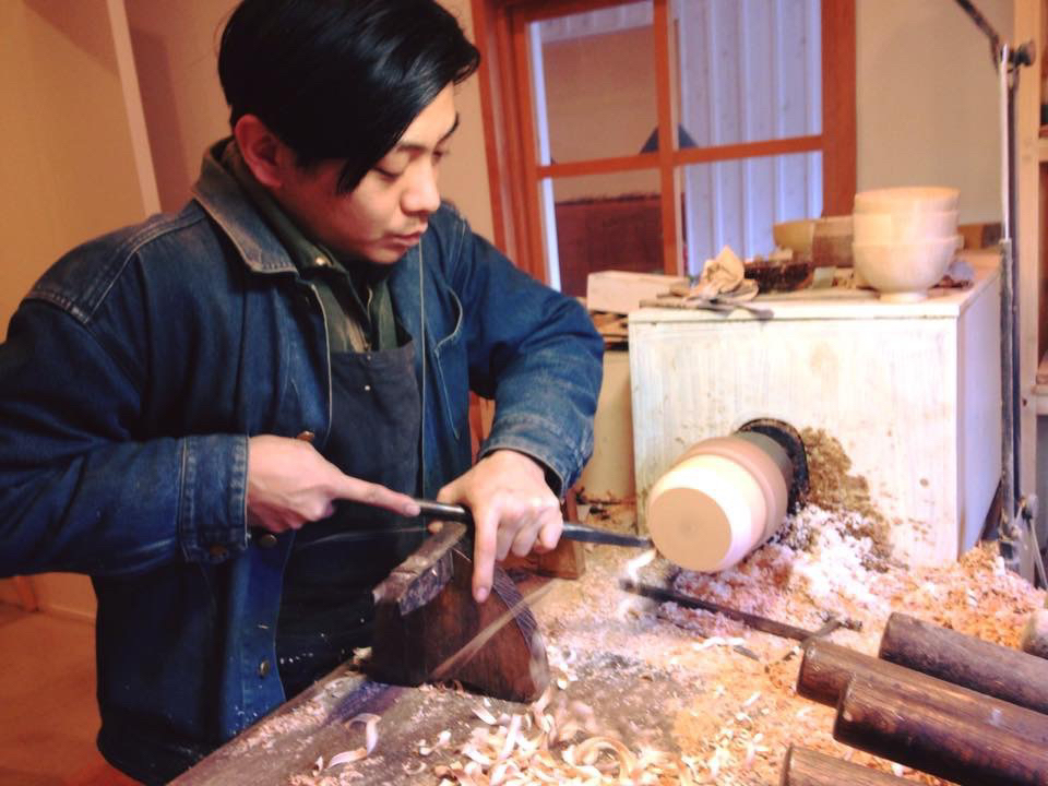 上級モクマイスターでは木に触れ、削り、木の器ができるまでを