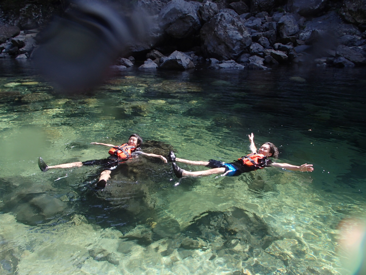 夏場は透明な川で泳いで魚を探しましょう♪