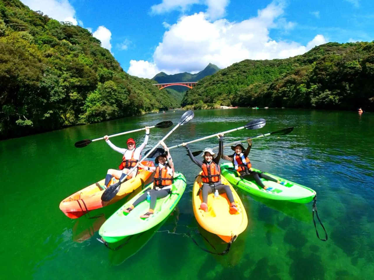 屋久島のカヤックは穏やかな流れの川でおこなうので、初めての方や女性、子供でも安心して参加できます。