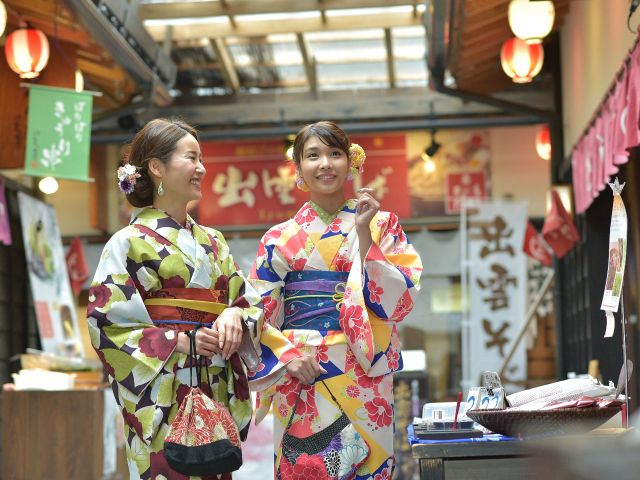 着物姿で歩く神門通りは、いつもの旅が何倍も楽しく、SNS映えも間違いなし。
