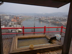 川沿いに建つホテルで、最上階にある露天風呂からの眺めがとても良いです。大浴場もガラス張りで開放感があります。