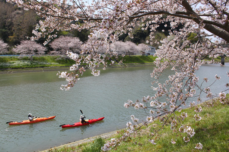 伊豆早春の風物詩といえば早咲きのカワヅザクラと菜の花。一足先にカヤックからお花見を楽しみます。桜並木が楽しめる青野川をカヤックで漕ぐ半日のツアーになります。