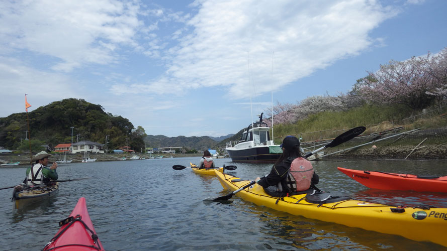 弓ケ浜から青野川のお花見ツアー+桜の木の下で特製ちらし寿司のランチ+苺狩りがセットになった特別プランです。カヌー・カヤック
