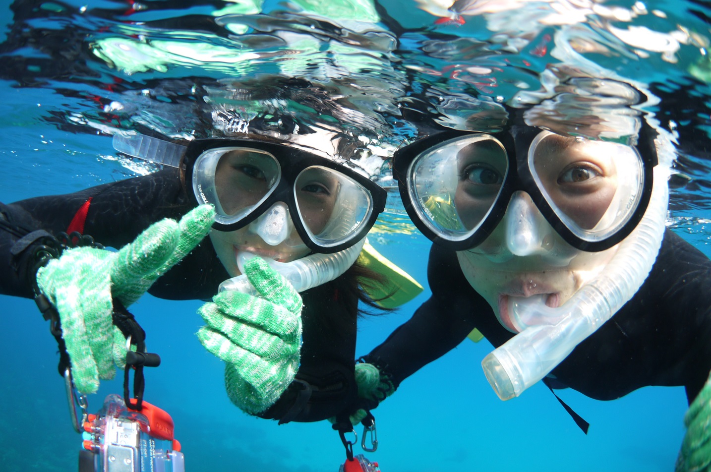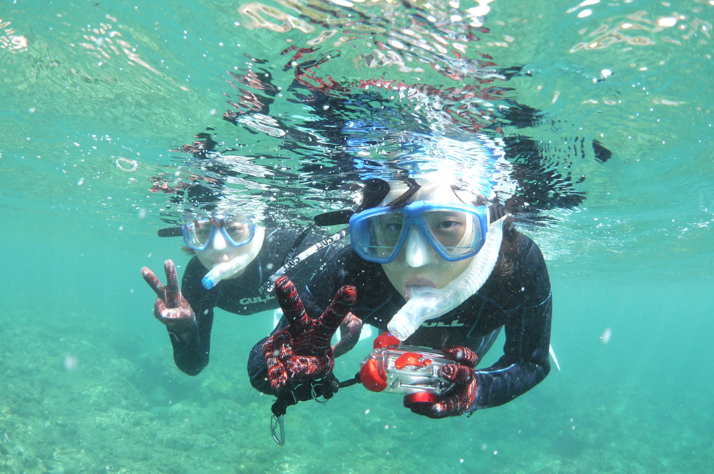 海で遊びたいけどダイビングはちょっと・・・という方におすすめがシュノーケル!ウェットスーツを着用しますのでどんな方でも沈むこと無し!のーんびりと水面から魚やカメと遊んでみませんか?