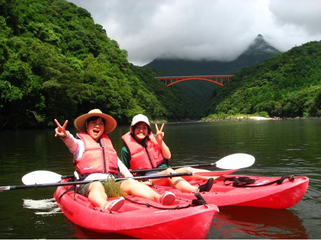 安房川でゆったりリバーカヤックを体験するプランです。2人乗り艇もあるのでご家族での体験もOK☆