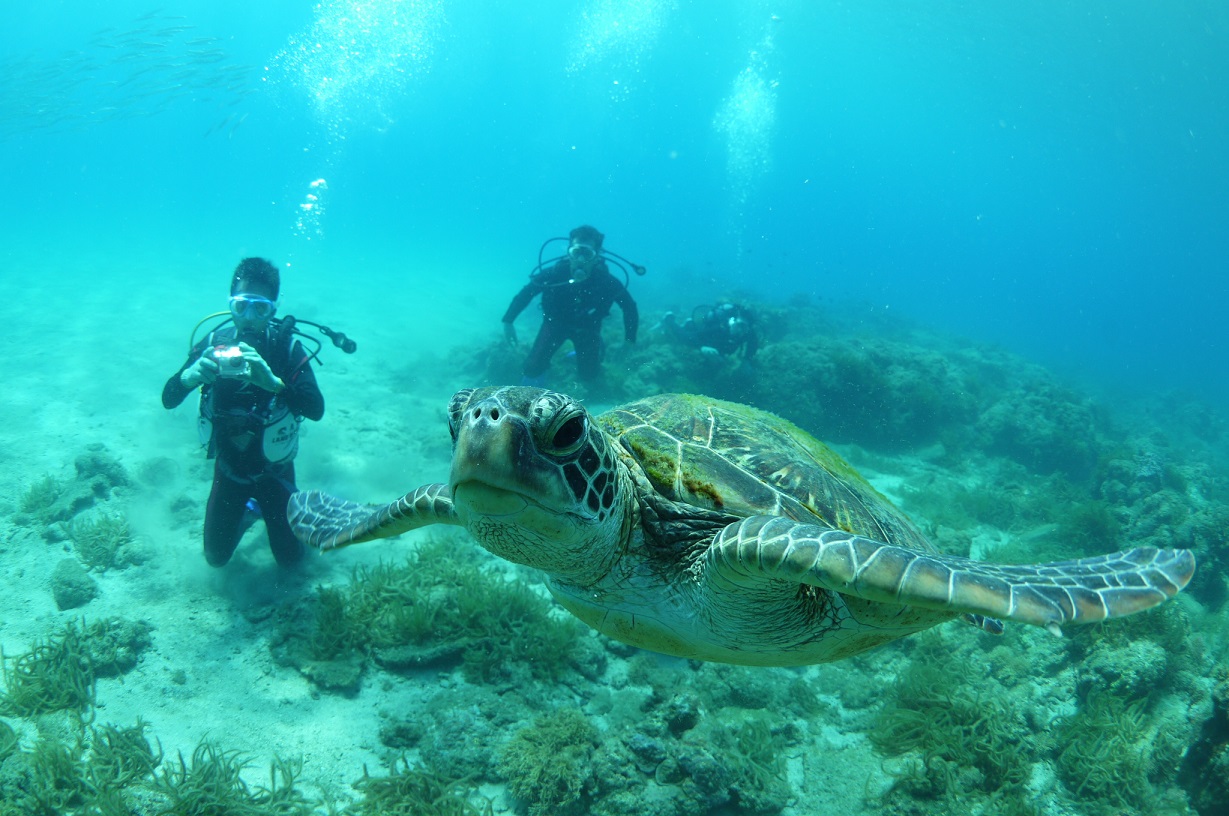 初めての体験ダイビングの方でも安心して屋久島でウミガメのいる世界に!潜水時間は40分以上は確定!