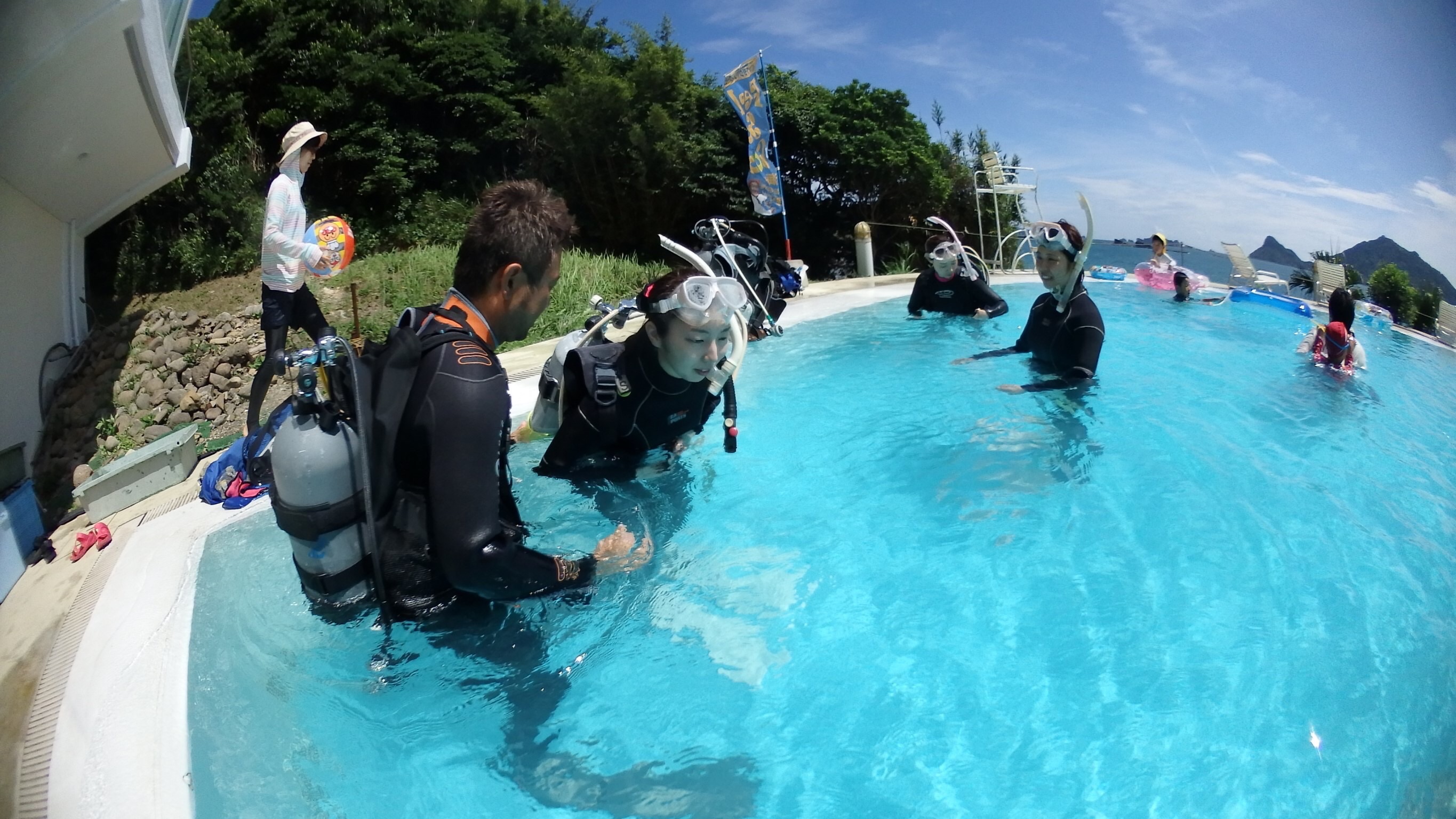 初めてのスクーバ体験。なんだか不安と楽しいことが待ってそうでドキドキしてくると思います。
