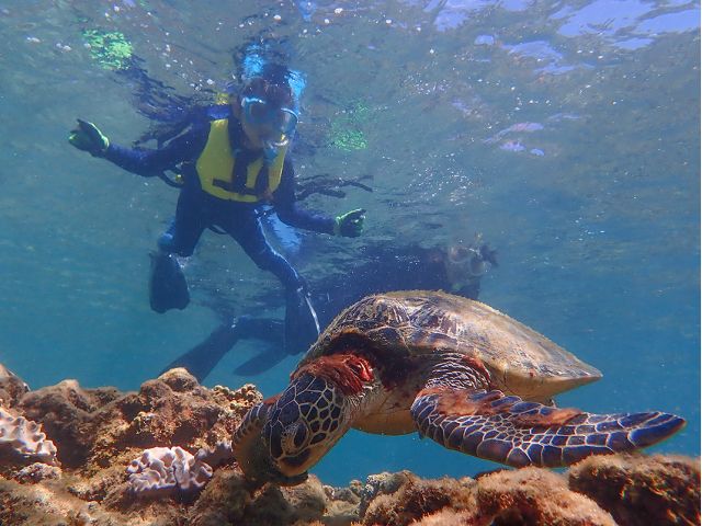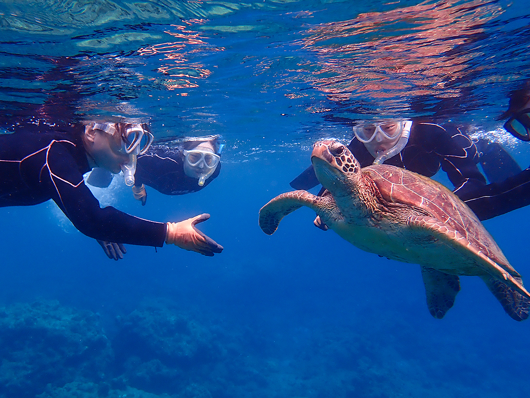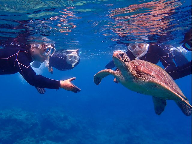 (注:ウミガメに100%出会えることを保証するツアーではありません。出会える可能性は非常に高いことは間違いありませんが、ウミガメは野生動物であることをご理解ください)