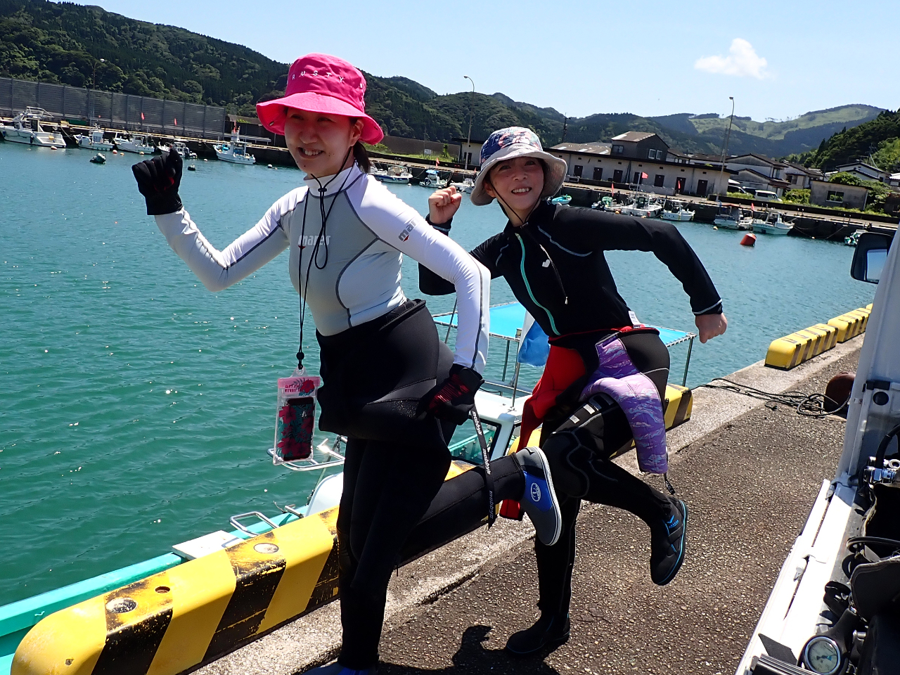 お勉強を終えたら、ウエットスーツに着替え、ダイビングボートに乗り込み出港!
