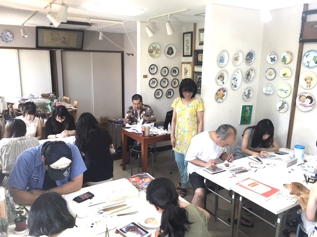 青い玉葱では、オリジナル絵具と筆でお好きな絵をお皿に描いていただきます!