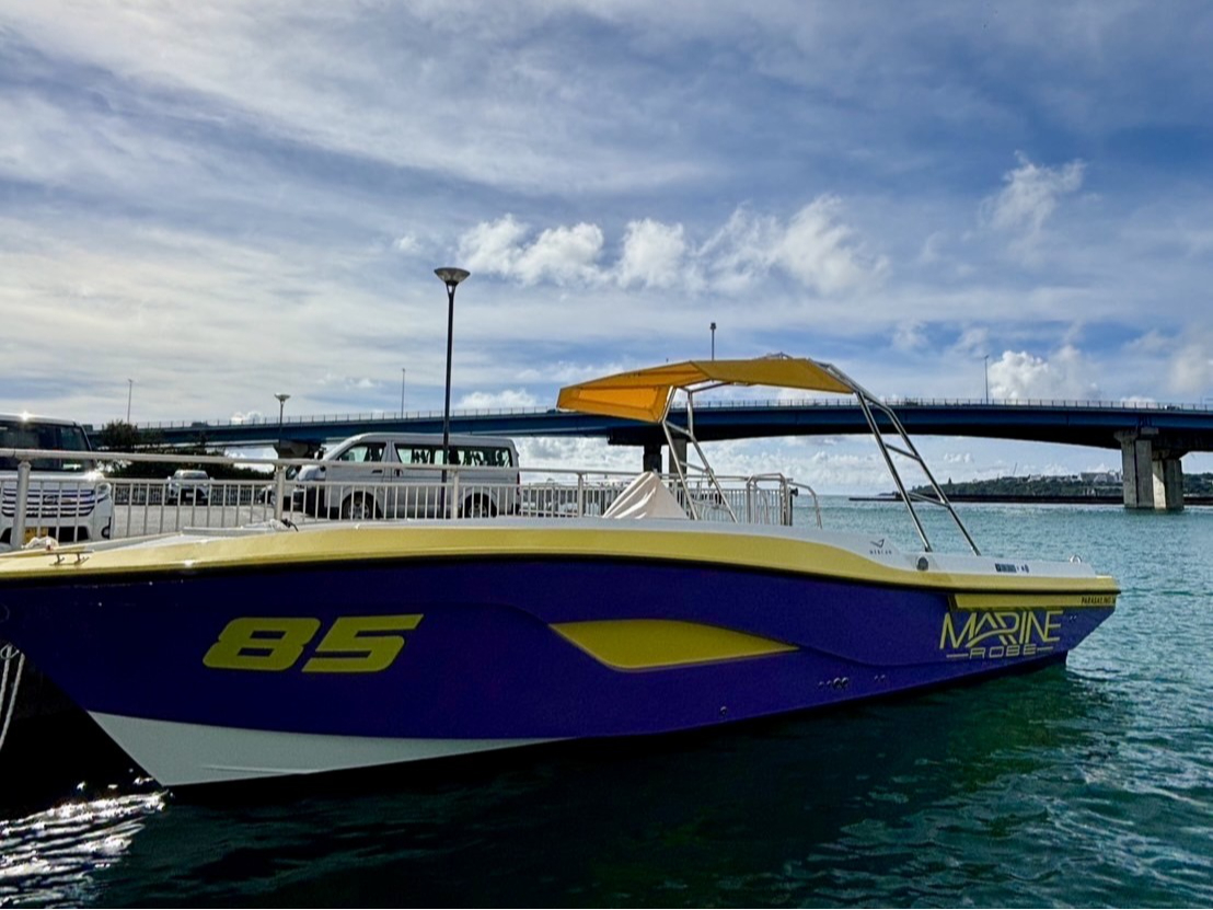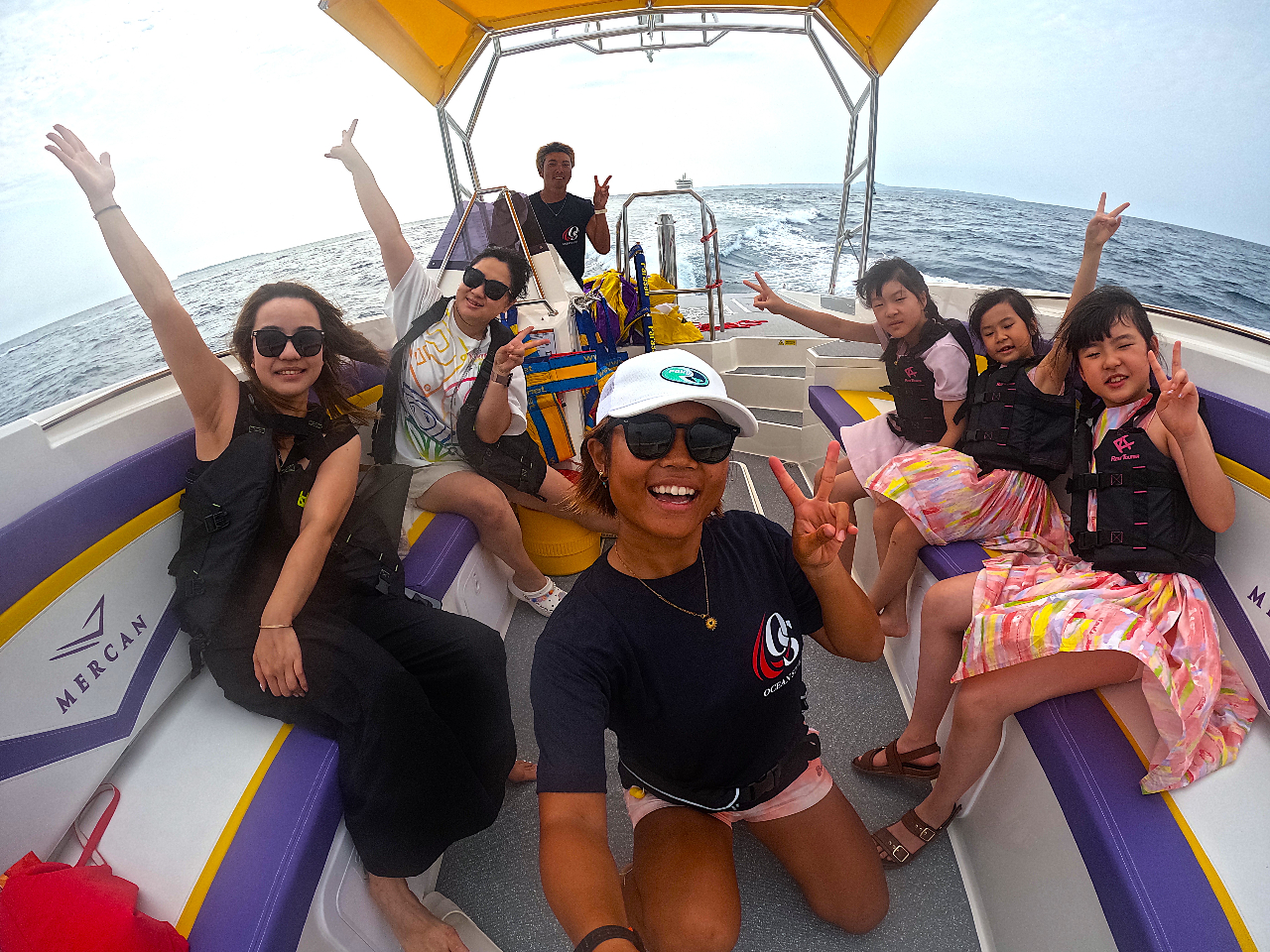 最新モデルのパラセーリング船は安定感はお墨付き!移動中は順番待ち時など、ストレスなくおくつろぎいただけます! 船酔い防止のため、飴ちゃんや冷たーいお茶もご用意しております♪
